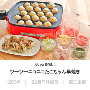 【燕三条製】たこ焼き器 高火力1200W 日本製 ホットプレート 電気 たこ焼きプレート 家庭用 本格 カリカリ 油 くっつかない ツーツーにこにこたこちゃん 早焼き 温度調節 杉山金属 国産 たこ焼き器 高火力1200W 日本製 ホットプレート 電気 たこ焼きプレート 家庭用 本格 カリカリ 油 くっつかない ツーツーにこにこたこちゃん 早焼き 温度調節 杉山金属 国産 燕三条製 待望の高火力タコ焼き器が登場! 家庭用のタコ焼き器の中でも高火力で美味しくつくれるたこ焼き器。