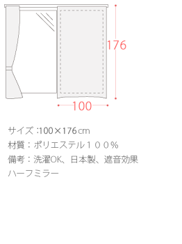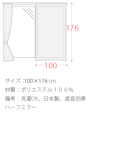 サイズ: 100×176cm 材質: ポリエステル100% 備考: 洗濯OK、日本製、遮熱効果 ハーフミラー※こちらの商品は1枚ずつの販売となっております。