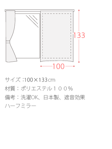 サイズ: 100×133cm 材質: ポリエステル100% 備考: 洗濯OK、日本製、遮熱効果 ハーフミラー※こちらの商品は1枚ずつの販売となっております。